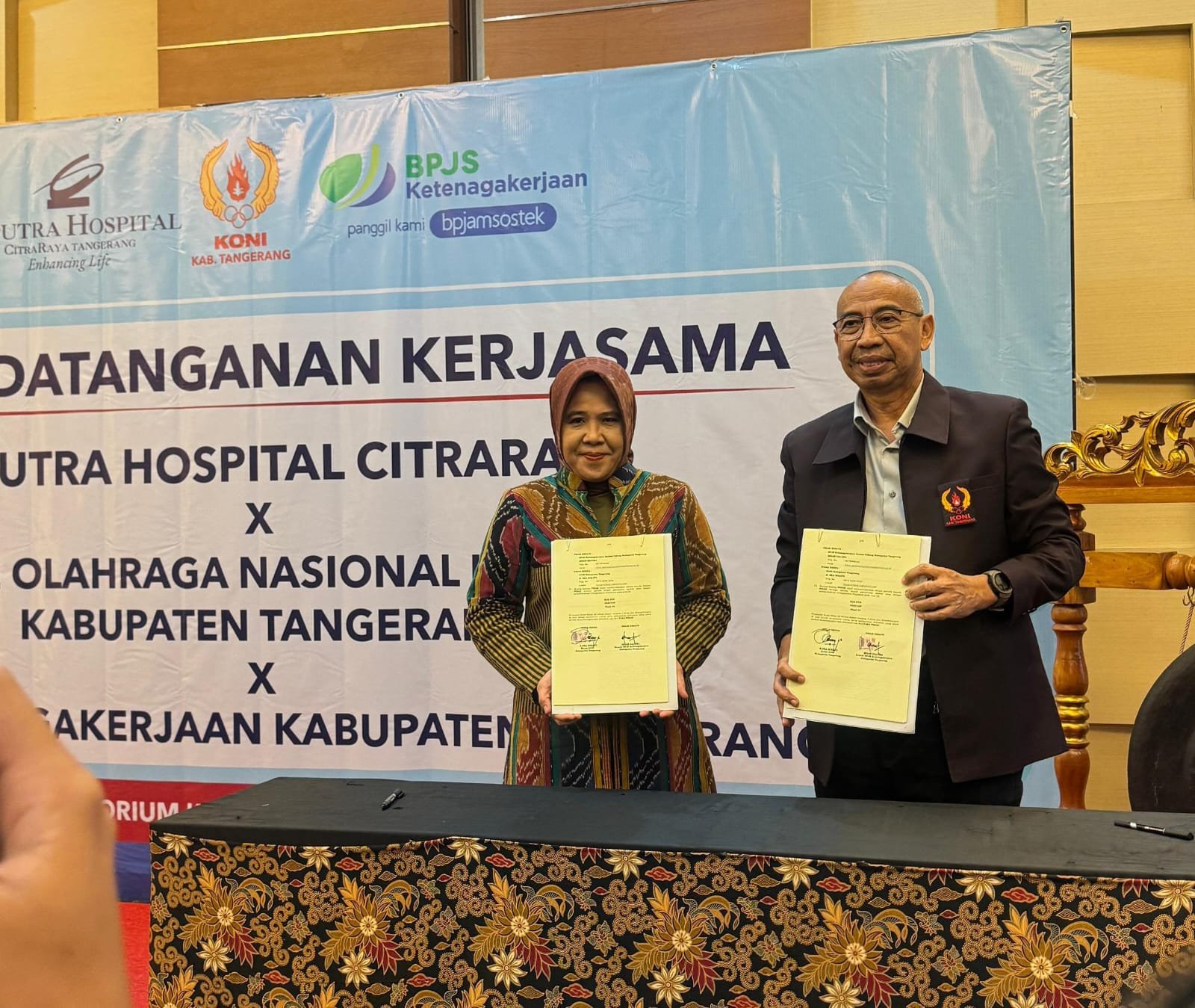 Untuk diketahui, bahwa selain bekerjasama dengan BPJS Ketenagakerjaan, KONI Kabupaten Tangerang juga melakukan penandatanganan nota kesepahaman (MoU) dengan Ciputra Hospital CitraRaya Tangerang dalam rangka memperkuat dukungan kesehatan bagi atlet, pelatih, serta insan olahraga di Kabupaten Tangerang.