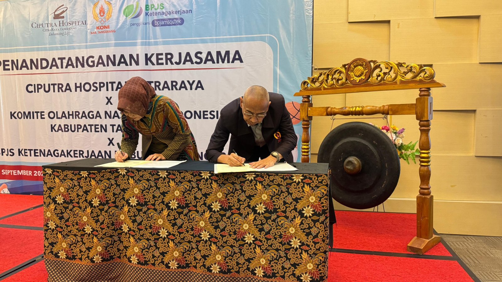 Acara penandatanganan kerja sama ini berlangsung di Auditorium Ciputra Hospital Citra Raya Tangerang. Acara ini dihadiri Direktur Ciputra Hospital CitraRaya Tangerang dr Maria Dewi Indrawati, jajaran manajemen rumah sakit, Ketua KONI Kabupaten Tangerang Eka Wibayu, pengurus KONI, pengurus cabang olahraga, dan Kepala Cabang BPJS Ketenagakerjaan Kabupaten Tangerang Ibkar Saloma beserta jajarannya. Rabu, 17 September 2025.