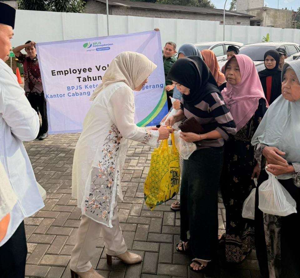 TANGERANG, (Gerbang Banten) – Di bulan suci Ramadhan 1447 Hijiriah, Kantor BPJS Ketenagakerjaan Cabang Kabupaten Tangerang mengadakan kegiatan employee volunteering dengan membagikan paket sembako dan takjil kepada masyarakat sekitar.