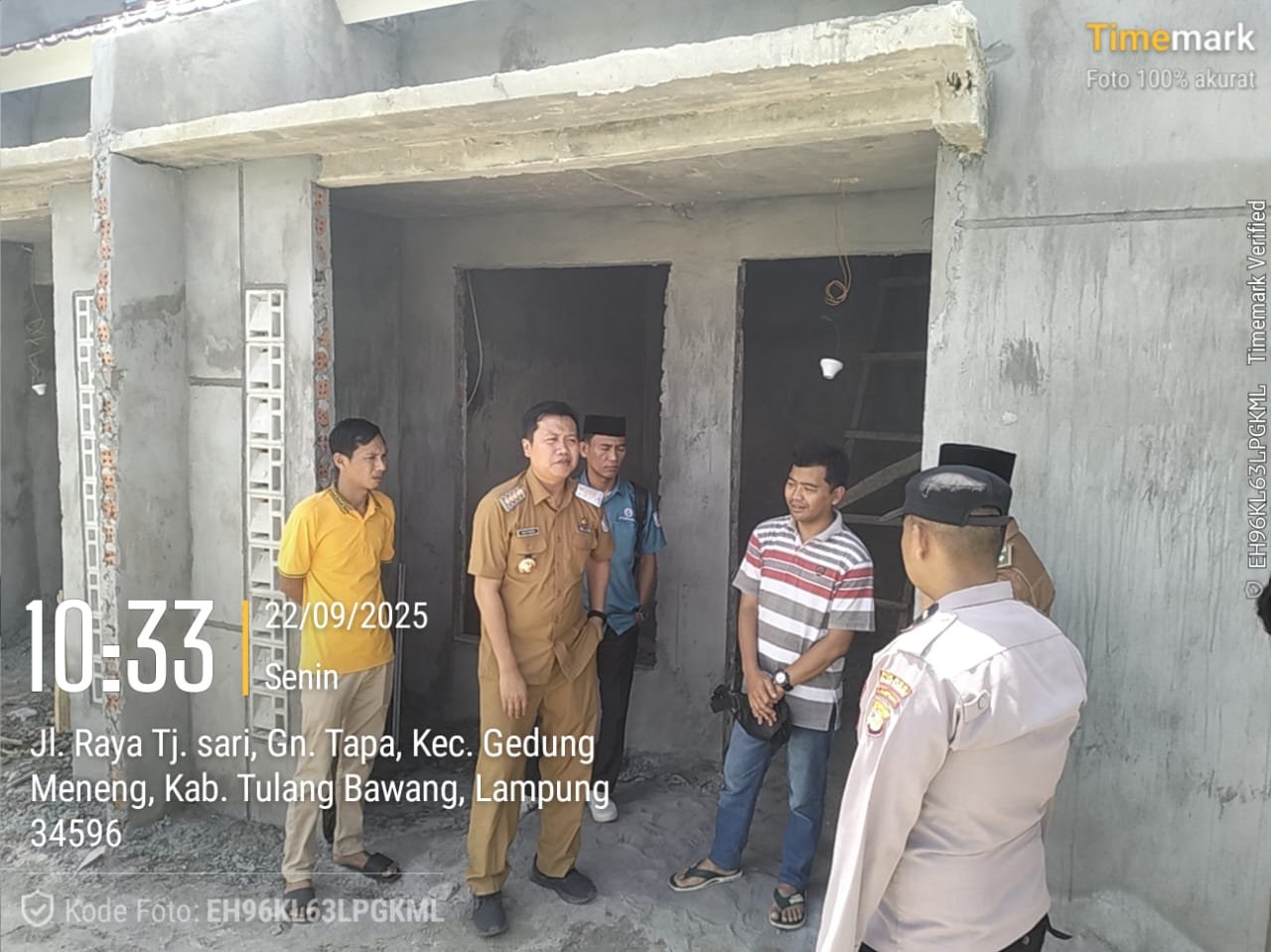 Dalam peninjauan pembangunan Sub Sektor Polsek dan Koramil, Camat Gedung Meneng di dampingi Kepala Kampung Gunung Tapa Ilir, Senin (22/9/2025).