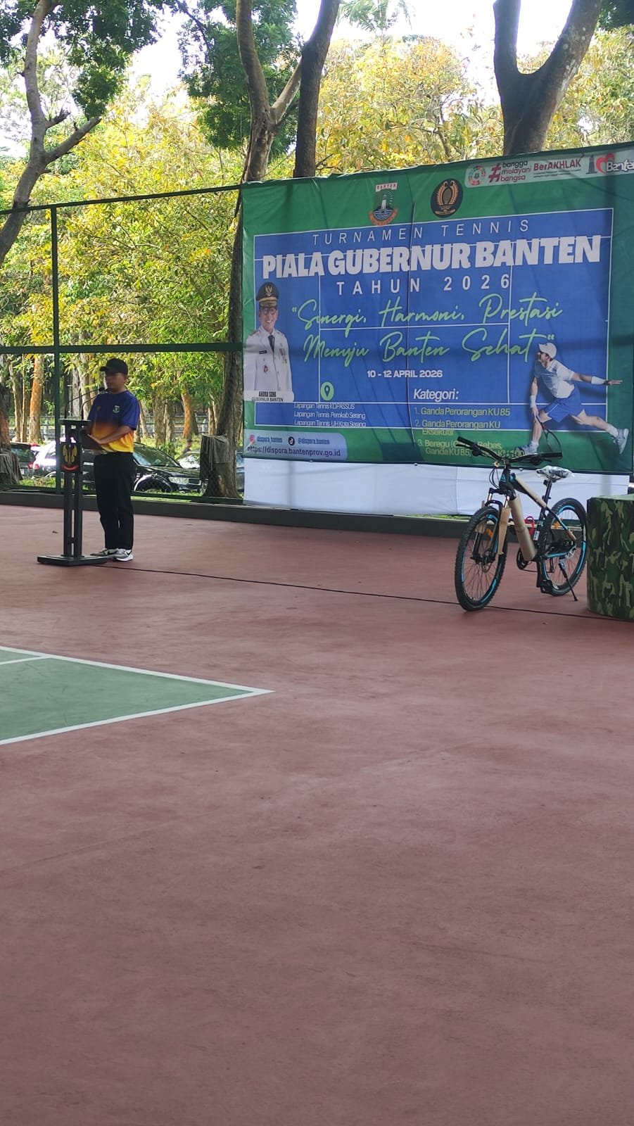Dinas Kepemudaan dan Olahraga Provinsi Banten menggelar Turnamen Tenis Piala Gubernur Banten Tahun 2026 yang berlangsung selama tiga hari, mulai 10 hingga 12 April 2026. Turnamen ini secara resmi dibuka oleh Andra Soni pada Jumat (10/4/2026) di Stadion Grup I Kopassus Kota Serang dan dihadiri unsur Forkopimda Provinsi Banten.