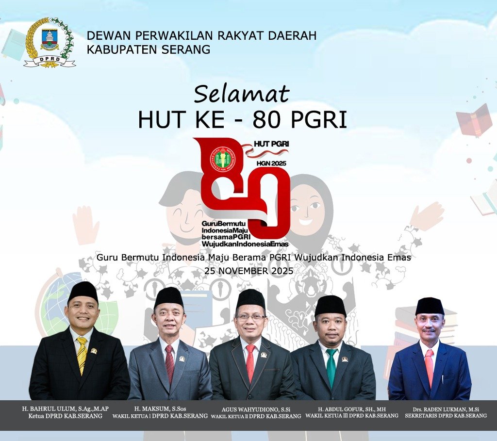 DPRD Kabupaten Serang Mengucapkan HUT PGRI Ke – 80 Redaksi28/11/20259 Dilihat Pos terkaitCegah Penularan HIV, Dinkes Kabupaten Serang Periksa Ratusan Ibu HamilTangsel Semakin Tertata, Pemkot Gaspol Infrastruktur BerkelanjutanTangsel Raih Peringkat II Nasional Sutami Award 2025 untuk Kinerja Terbaik Pembinaan Jasa KonstruksiBanten Perkuat Kurikulum Anti Narkoba, Dindikbud dan BNN Luncurkan Program IKAN di SekolahGubernur Andra Soni Apresiasi Kolaborasi Pemkot Tangerang dan BKK SMK: Siapkan Lulusan Tembus Pasar Kerja GlobalHarga Beras di Serang Stabil, Tim Gabungan Polda Banten Lakukan Pemantauan Rutin