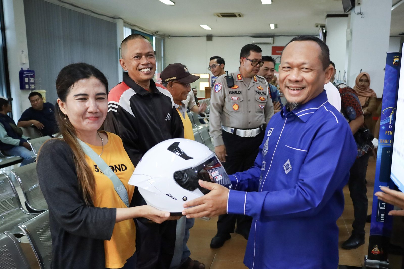 Sebagai simbol dukungan terhadap kampanye keselamatan berkendara, Jasa Raharja bersama instansi terkait juga melakukan pembagian helm kepada wajib pajak yang tertib. Hal ini menjadi bentuk penghargaan atas kepatuhan masyarakat dalam membayar pajak kendaraan, sekaligus mengingatkan pentingnya menjaga keselamatan di jalan.