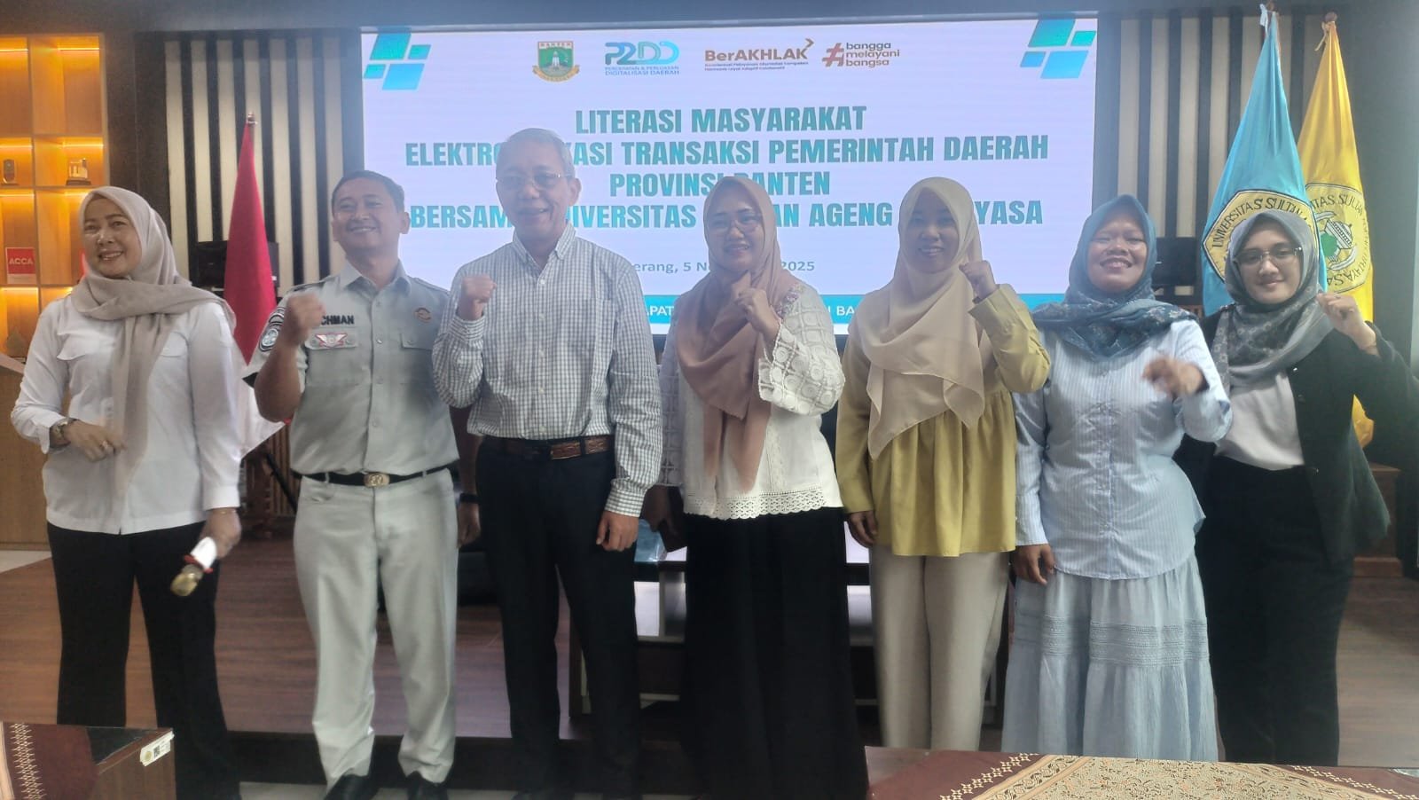 Serang (gerbangbanten.com)– Dalam Rangka Peningkatan Indeks Elektronifikasi Transaksi Pemerintah Daerah (ETPD) dan Peningkatan Literasi Digital, maka Badan Pendapatan Daerah Provinsi Banten mengadakan kegiatan Edukasi dan Literasi Elektronifikasi Transaksi Pemerintah Daerah (ETPD) pada tanggal 05 November 2025 di Fakultas Ekonomi dan Bisnes (FEB) Universitas Sultan Agung Tirtayasa Serang. Acara ini dihadiri oleh Dekan FEB Untirta Prof. Dr. Tb. Ismail, SE, MM, Ak, CA, CMA Kegiatan ini juga bertujuan untuk Perluasan Digitalisasi melalui Edukasi dan Literasi Masyarakat khususnya Wajib Pajak di Wilayah Provinsi Banten. Kedepannya diharapkan masyarakat Banten terbiasa membayar PKB dan SWDKLLJ melalui aplikasi digital seperti Samsat Ceria, Sambat dan SIGNAL.