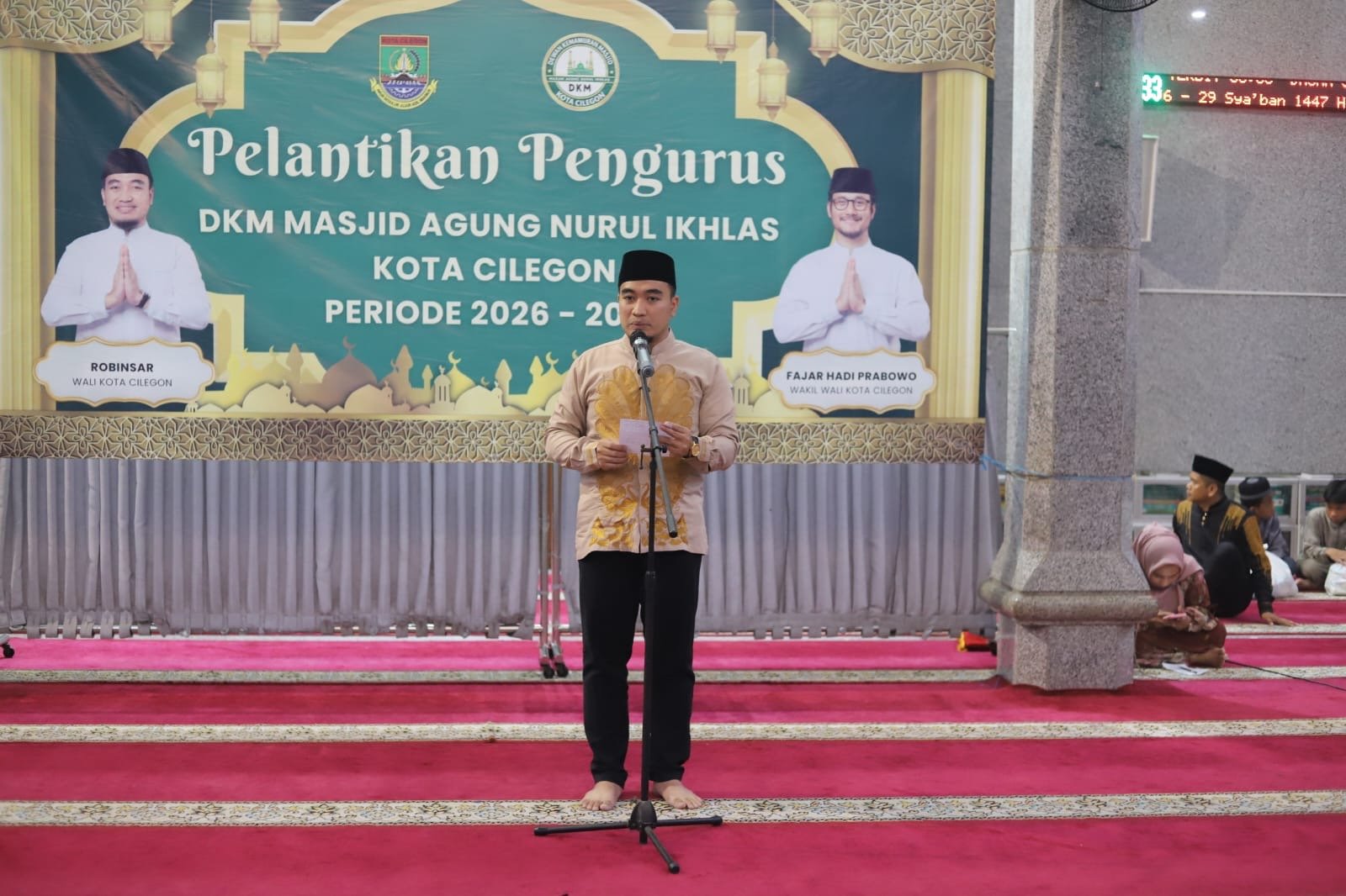 CILEGON, (gerbangbanten.com) — Wali Kota Cilegon Robinsar secara resmi melantik dan mengukuhkan Pengurus Dewan Kemakmuran Masjid (DKM) Masjid Agung Nurul Ikhlas Cilegon pada Senin, 16 Februari 2026. Kegiatan pelantikan yang berlangsung khidmat ini digelar langsung di Masjid Agung Nurul Ikhlas Cilegon dan dihadiri unsur pemerintah daerah, tokoh agama, serta jamaah masjid.