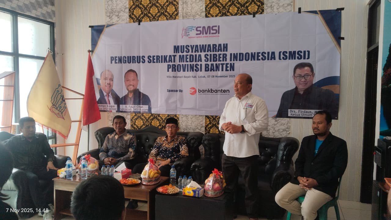 LEBAK, (gerbangbanten.com) – Serikat Media Siber Indonesia (SMSI) Provinsi Banten menggelar Musyawarah Provinsi (Musprov) di Villa Sinar Matahari Bayah, Pantai Sawarna, Kabupaten Lebak, Jumat (7/11/2025).