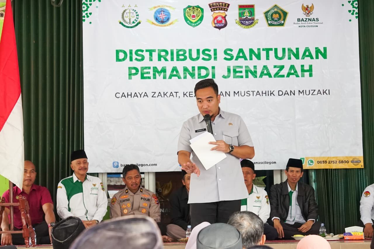 CILEGON, (gerbangbanten.com) – Pemerintah Kota (Pemkot) Cilegon melalui Badan Amil Zakat Nasional (Baznas) Kota Cilegon mendistribusikan Santunan kepada pemandi jenazah. Pemberian santunan yang turut dihadiri Wali Kota Cilegon Robinsar ini berlangsung di Halaman Kantor Baznas Kota Cilegon, Selasa 23 Desember 2025.