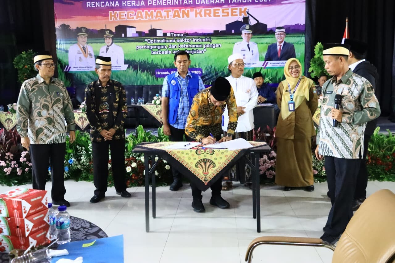 TANGERANG, (gerbangbanten.com) – Kecamatan Kresek menggelar Musyawarah Perencanaan Pembangunan (Musrenbang) RKPD Tahun 2027 di Aula Kantor Kecamatan Kresek pada Kamis, (26/1/2026). Forum ini menjadi ruang penetapan arah pembangunan kecamatan dengan tema optimalisasi sektor industri, perdagangan, dan ketahanan pangan berkelanjutan.