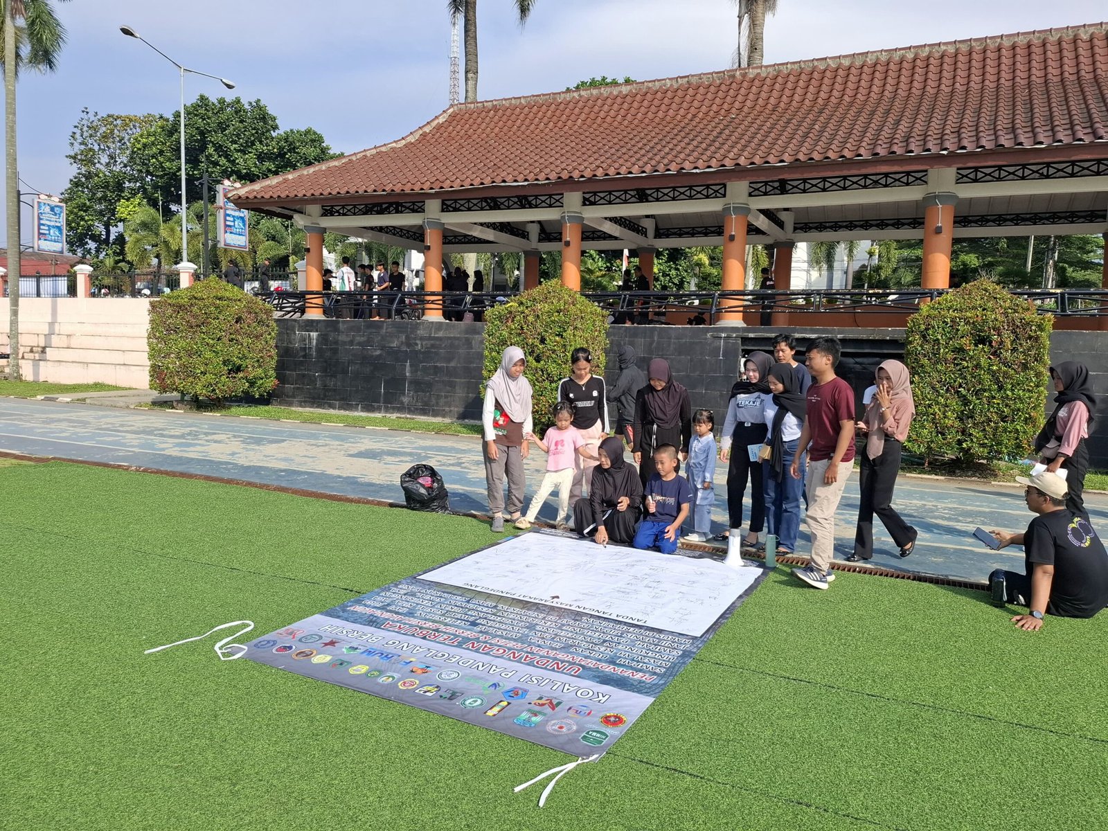 Pandeglang, (gerbangbanten.com) – — Sejumlah Pemuda Pandeglang yang tergabung dari Koalisi Pandeglang Bersih menggelar aksi penggalangan tanda tangan petisi dan kegiatan bersih-bersih di Alun-Alun Pandeglang sebagai bentuk kepedulian terhadap persoalan lingkungan yang semakin mengkhawatirkan. Aksi ini menjadi bagian dari gerakan moral dan sosial yang menuntut keadilan ekologis atas keberadaan Tempat Pembuangan Akhir (TPA) Bangkonol di Kecamatan Koroncong, Minggu, (13/7/25).