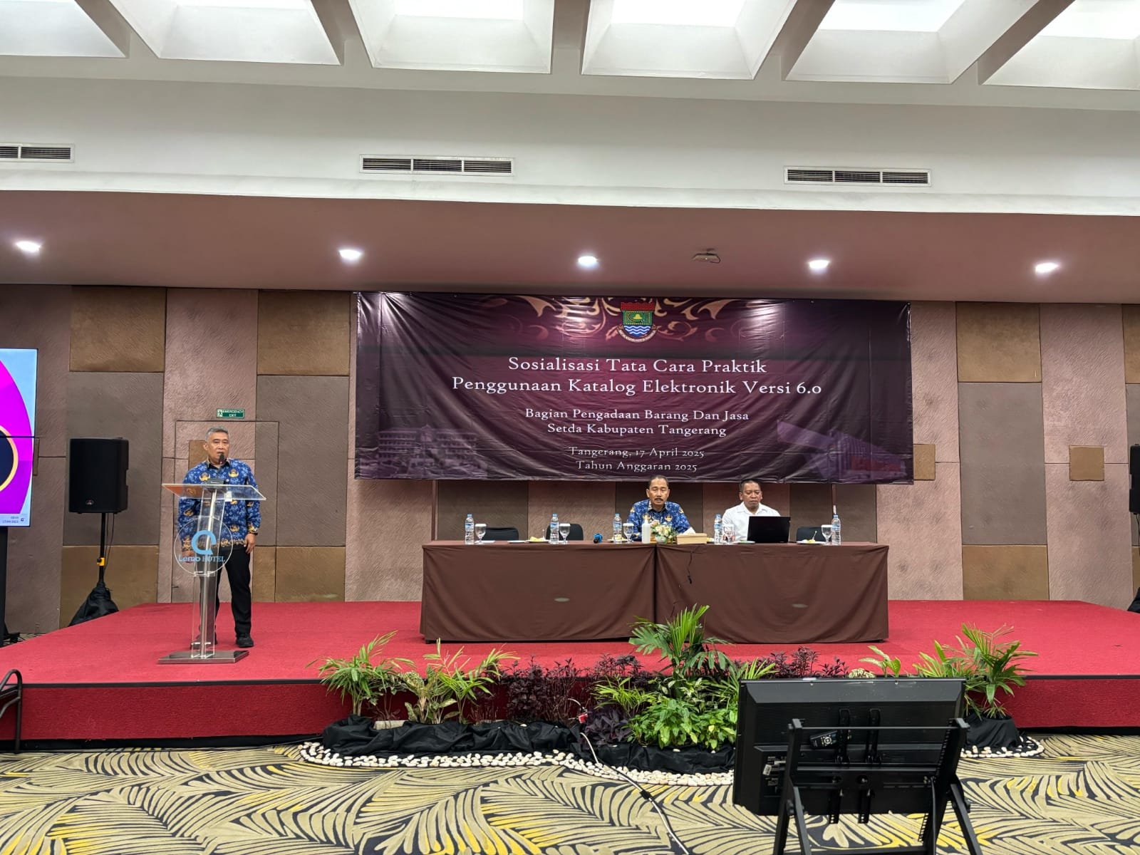 TANGERANG (gerbangbanten.com) – Bagian Pengadaan Barang dan Jasa Sekretariat Daerah Kabupaten Tangerang menyelenggarakan kegiatan Sosialisasi Tata Cara Praktik Penggunaan Aplikasi Katalog Elektronik Versi 6 pada Kamis, 17 April 2025, bertempat di Lemo Hotel Kabupaten Tangerang.