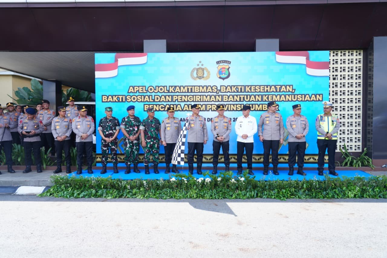 Kabid Humas menjelaskan bahwa sebagai bentuk komitmen Polri dalam percepatan penanganan bencana, Wakil Kepala Kepolisian Republik Indonesia, Komjen Pol. Dedi Prasetyo, memimpin langsung kegiatan pelepasan bantuan kemanusiaan Polda Lampung pada Rabu (3/12/2025). Kegiatan bertema “Bersama Menjaga Lampung” ini berlangsung di Lapangan Apel Mapolda Lampung dan dihadiri ribuan perwakilan driver ojek online se-Lampung. Dalam kegiatan tersebut, Wakapolri melepas 14 truk logistik berisi 12.489 kilogram beras, 5.763 dus mi instan, 1.515 selimut, 2.537 bal popok, serta kebutuhan lain seperti pakaian, obat-obatan, gula, bahan makanan, dan air mineral, untuk memperkuat penanganan bencana di Aceh, Sumatera Utara, dan Sumatera Barat.