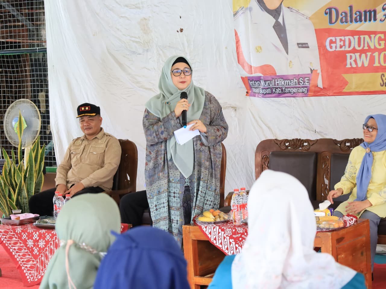 TANGERANG, (gerbangbanten.com) – Wakil Bupati (Wabup) Tangerang, Intan Nurul Hikmah meminta warga Perum Graha Pesona, khususnya warga RW. 10 agar memanfaatkan Gedung Serbaguna (GSG) untuk memperkuat kebersamaan, gotong-royong dan kepedulian sosial demi kemajuan bersama.