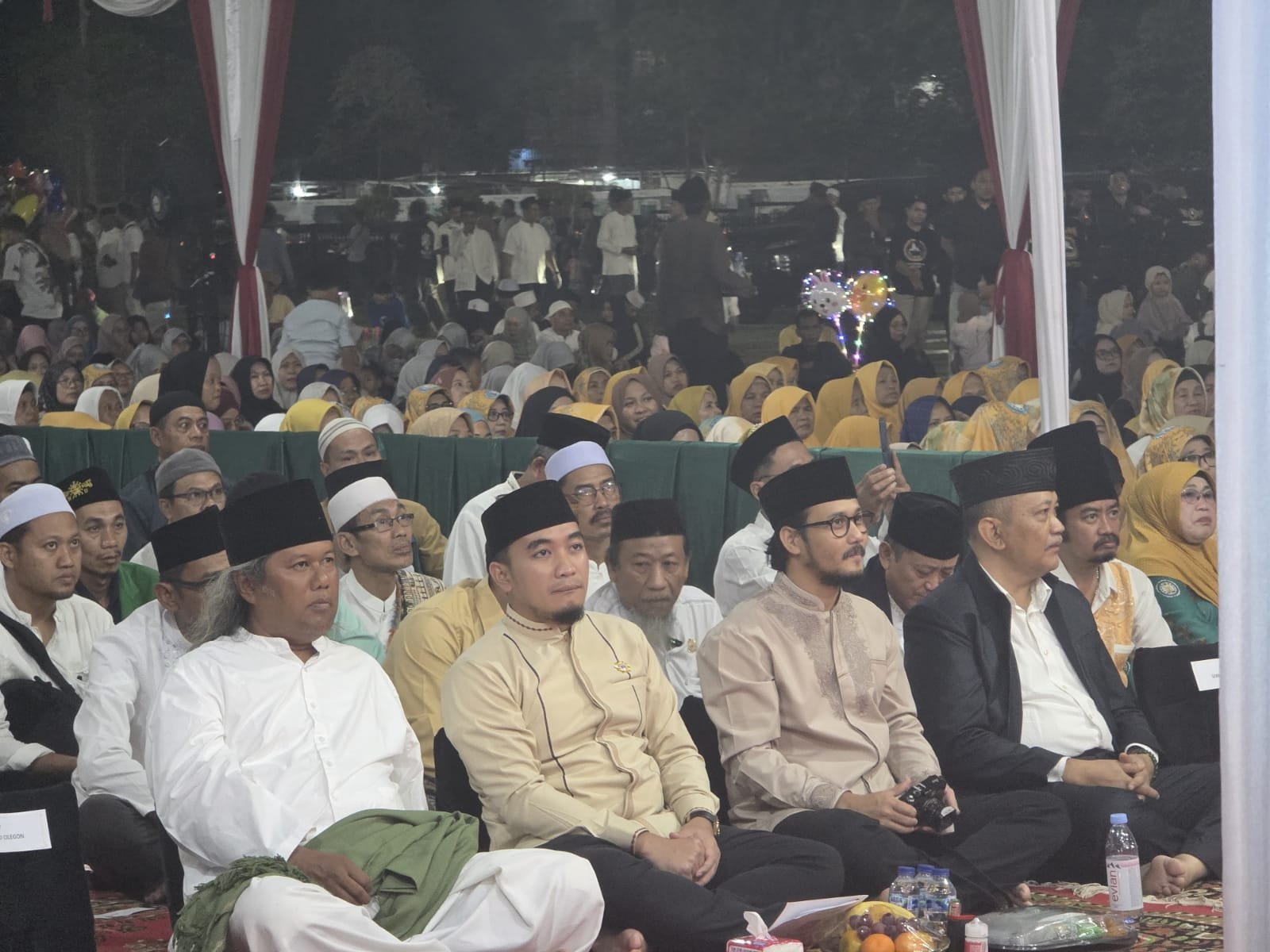 CILEGON, (gerbangbanten.com) – Ribuan masyarakat Kota Cilegon mengikuti Istighosah Muharram 1447 H dan Haul Syuhada Geger Cilegon 1888. Acara yang dirangkaikan dengan pemberian bantuan sosial bagi anak yatim ini berlangsung di Alun-Alun Kota Cilegon, Rabu 9 Juli 2025 malam.
