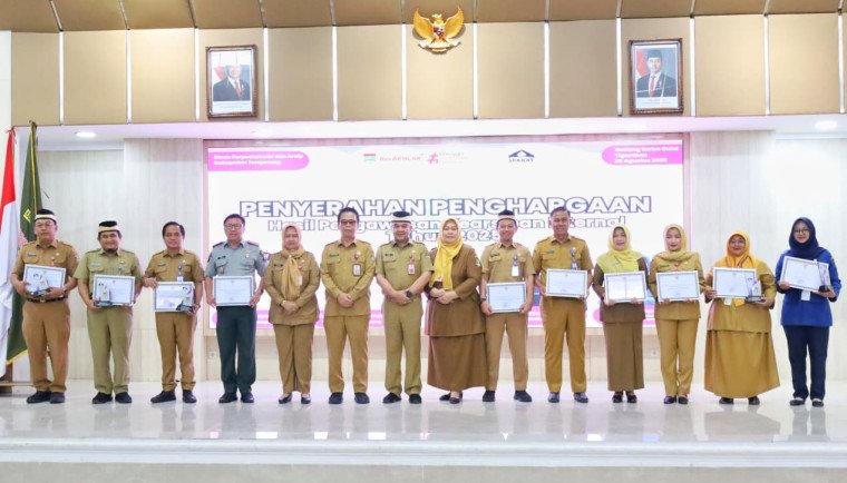TANGERANG (gerbangbanten.com) – Sekretaris Daerah (Sekda) Kabupaten Tangerang, Soma Atmaja membuka dan menyerahkan secara simbolis Penghargaan Hasil Pengawasan Kearsipan Internal Kabupaten Tangerang Tahun 2025 di GSG Puspemkab Tangerang, Senin (25/8/25).