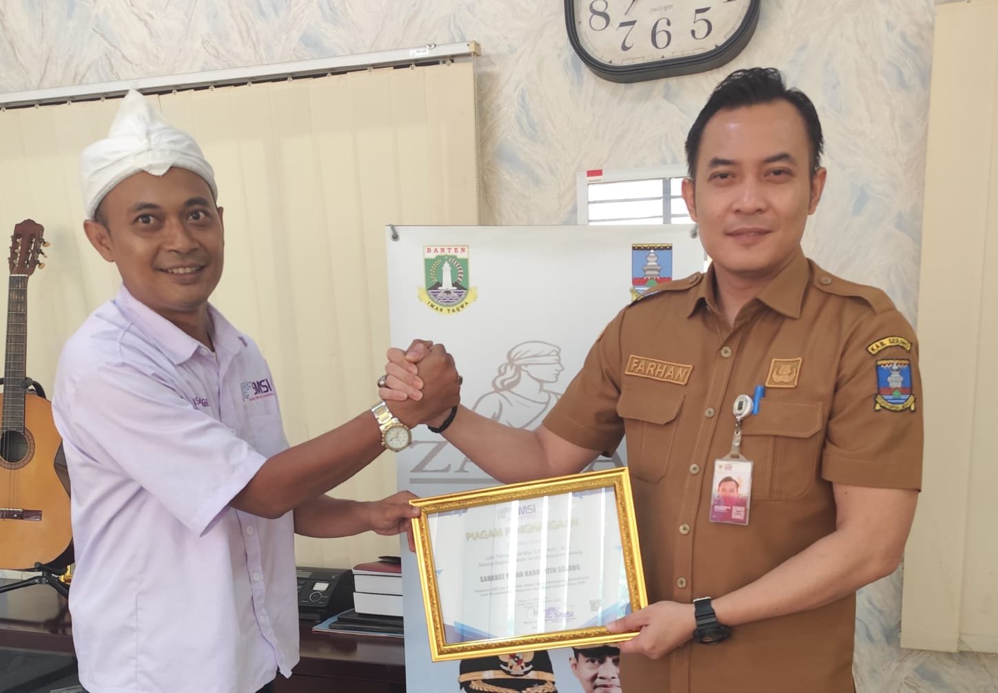 SERANG (gerbangbanten.com) – Kepala Bagian Hukum Sekretariat Daerah Kabupaten Serang, Lalu Farhan Nugraha menerima penghargaan bergengsi sebagai Sahabat Media dari Serikat Media Siber Indonesia (SMSI) Kabupaten Serang. Penghargaan ini diserahkan langsung oleh Ketua SMSI Kabupaten Serang, Wisnu Anggoro, di Pendopo Kabupaten Serang, Selasa (21/10/25).