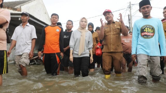 Bupati Serang Ratu Rachmatuzakiyah meninjau lokasi banjir di Perumahan Bumi Ciruas Permai (BCP) 2, Desa Ranjeng, Kecamatan Ciruas pada Selasa, …