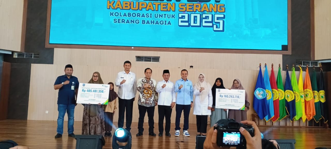 Adapun penyerahan santunan BPJS Ketenagakerjaan ini diserahkan langsung oleh Wakil Bupati Serang M. Najib Hamas pada saat pembukaan Naker Fest Kabupaten Serang 2025 di Kampus Universitas Sultan Ageng Tirtayasa (Untirta). Rabu, 27 Agustus 2025.