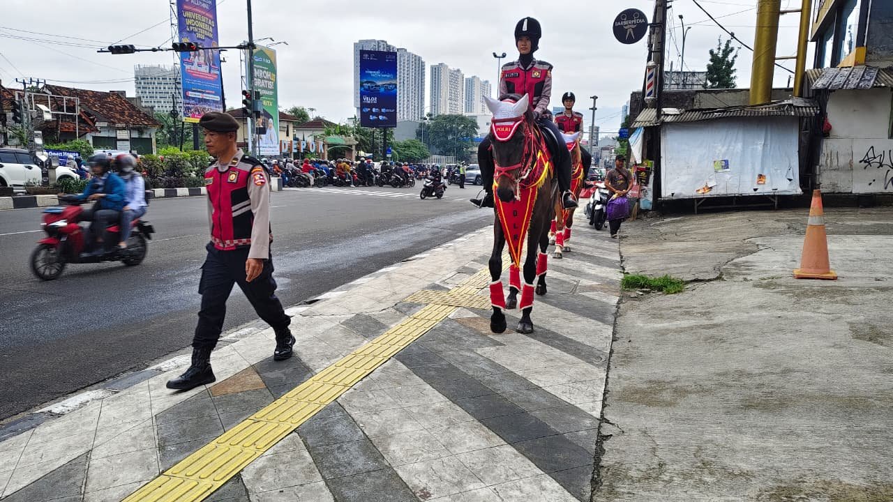 Kegiatan yang dimulai sejak pukul 06.00 WIB ini dipimpin langsung oleh Ipda Wahyu JP dengan mengerahkan tujuh personel tangguh serta dua satwa turangga (kuda) andalan bernama Nobel dan Diamant, patroli dimulai dari Mako Korsabhara menyusuri protokol Jalan Margonda Raya hingga titik lampu merah utama.